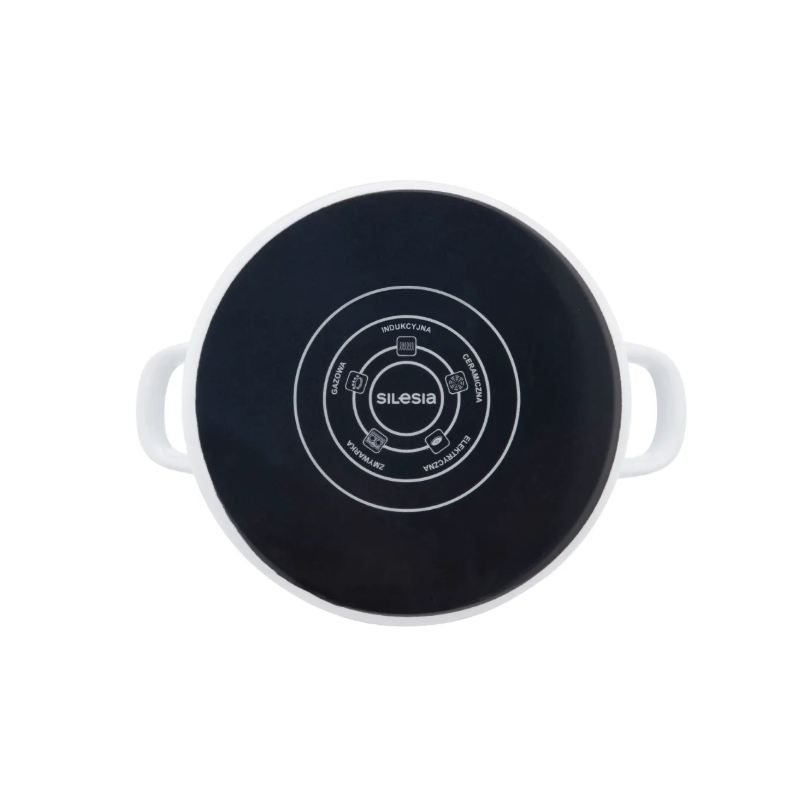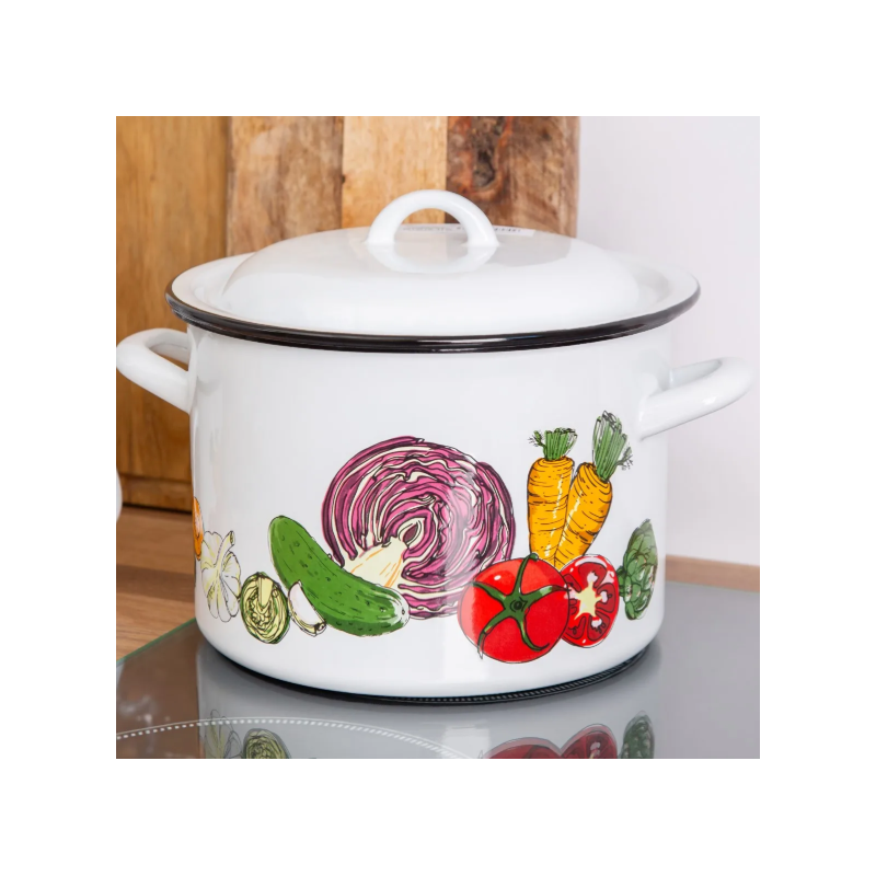 Izrađen je od visokokvalitetnog ugljičnog čelika debljine 0,8 mm. Premazan je s dva sloja emajla, iznutra i izvana. Debljina mu je čak 1,5 mm. Visokokvalitetni emajl i robusna konstrukcija čine ga izdržljivim i otpornim na oštećenja. Emajlirani lonac ravnomjerno raspoređuje toplinu. Otporan je na kiseline i koroziju. Ne sadrži nikal, što ga čini idealnim za alergičare. Bijela boja lonca daje mu klasičan izgled. Njegov veliki kapacitet omogućuje kuhanje za cijelu obitelj. Pogodan je za sve ploče za kuhanje. Emajl pomaže u očuvanju prirodnih okusa i aroma hrane. Lonac se može koristiti u pećnici do 220 °C (430 °F). Emajlirani lonci lako se održavaju u izvrsnom stanju. Može se prati u perilici posuđa.