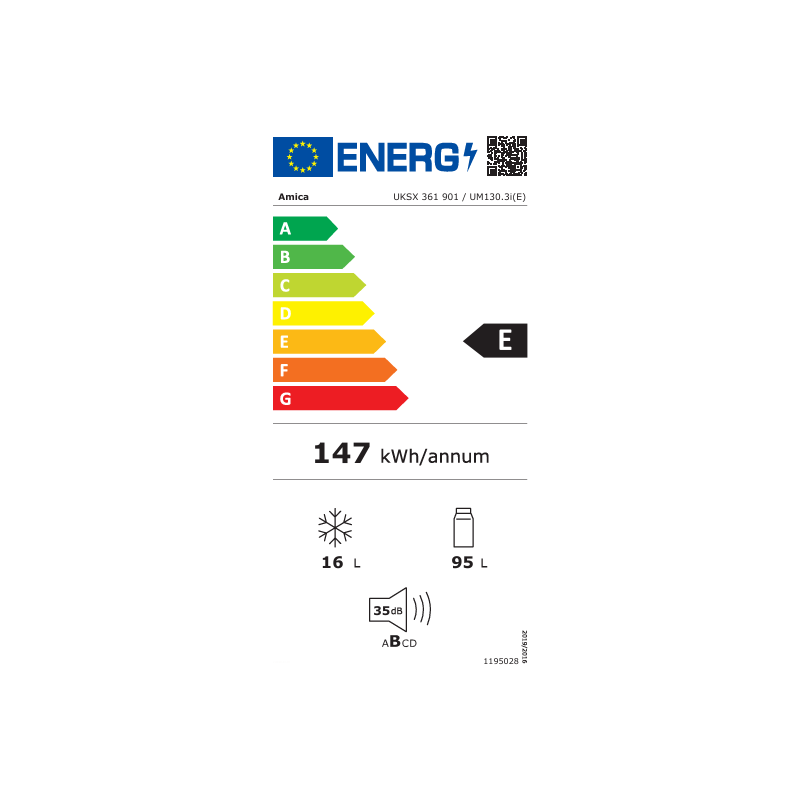 ugradbeni podpultni hladnjak Brutto kapacitet: 112 l Netto kapacitet hladnjaka: 95 l Netto kapacitet zamrzivača: 16 l Energetski razred: E Kapacitet zamrzavanja: 2 kg/24h Pohrana namirnica kod nestanka struje: 11 sati Godišnja potrošnja: 173 kWh; Razina buke: 41 dB Broj polica – 2 / Broj ladica u zamrzivaču – 1 Mehaničke kontrole / Univerzalna vrata / Antibakterijski sistem Automatsko odleđivanje / Držač jaja Dimenzije: 82,5 x 59,6 x 55 cm Boja: bijela