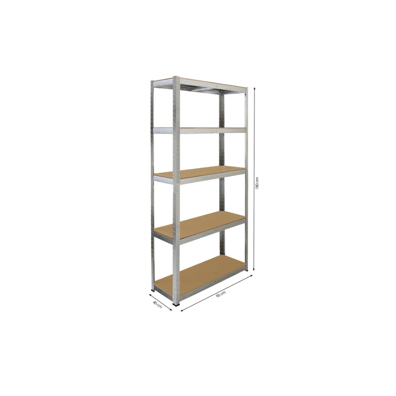 Praktične police s 5 polica i okvirom od pocinčanog čelika 0,7 mm. Police su izrađene od MDF ploča debljine 5 mm, svaka s opterećenjem maks. 175 kg. Visinu police je jednostavno prilagoditi prema vašim potrebama. Sastavljanje je brzo, jednostavno i bez vijaka Praktični plastični kutni zaštitnici
