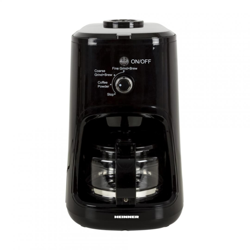 Aparat za kavu Heinner HCM-900RBK s mlincem, snaga: 900 W, kapacitet: 0,6 l, kapacitet mljevene kave: 36 g, perivi i uklonjivi filter, uklonjivi držač filtera, uklonjivi spremnik za vodu, oštrice mlina od nehrđajućeg čelika, podešavanje mljevenja: fino i grubo mljevenje, proces mljevenja: 20-30 sekundi, spremnik za vodu otporan na visoke temperature