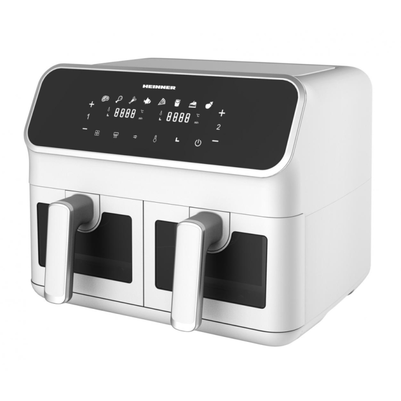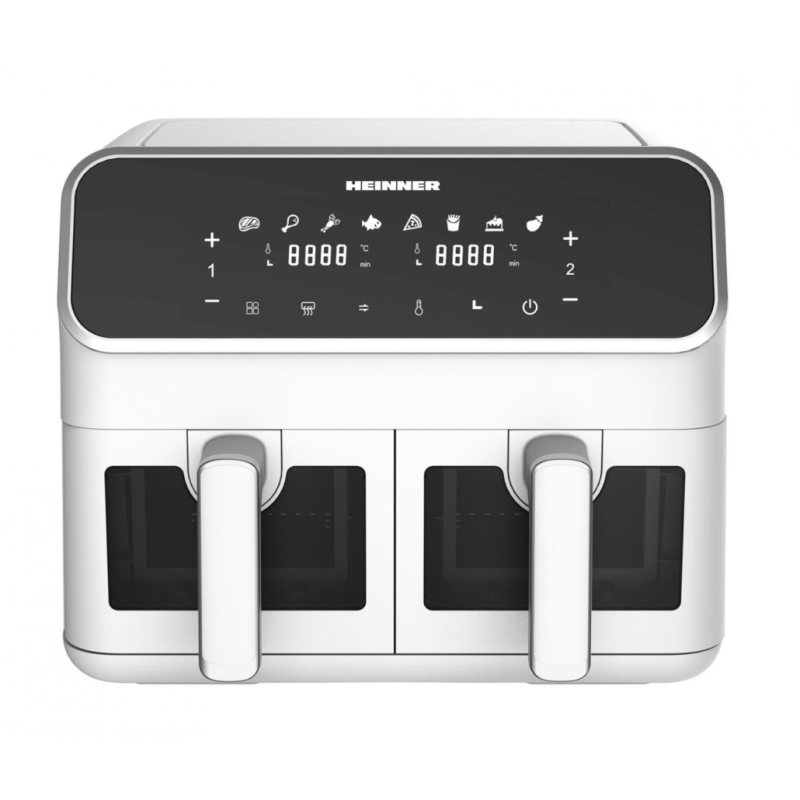 HEINNER HAF-H8DBWH17 DVOSTRUKA FRITEZA NA VRUĆI ZRAK, 1700 W, UKUPNI KAPACITET: 8 L, DIGITALNI ZASLON I UPRAVLJANJE NA DODIR, POJEDINAČNO UPRAVLJANJE, 8 UNAPRIJED POSTAVLJENIH PROGRAMA, TEMPERATURA 80-200 STUPNJA, FUNKCIJE SINKRONIZACIJE I USKLAĐIVANJA, PROZORI ZA NADZOR, AUTOMATSKO TOPLJENJE, NELJEPLJIVI PREMAZ, BIJELA