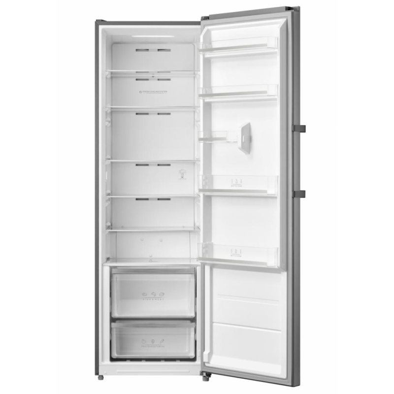 Heinner HF-M362NFXE++ hladnjak, ukupni kapacitet 362L, No Frost, energetska klasa učinkovitosti E, zaslon, elektroničko upravljanje, funkcija super hlađenja, alarm otvorenih vrata, LED svjetlo, 5 staklenih polica, 2 ladice za voće i povrće, dimenzije: 59,5 x 61,8 x 185 cm, Boja: Izgled nehrđajućeg čelika