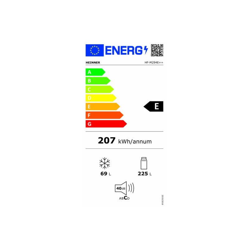 Heinner HF-M294E++ hladnjak s 2 vrata, energetska klasa: E, ukupni kapacitet: 294L, kapacitet hladnjaka: 225L, kapacitet zamrzivača: 69L, mehaničko upravljanje s podesivim termostatom, LED svjetlo, 3 staklene police hladnjaka, pretinac za voće i povrće, vrata s mogućnošću okretanja, kapacitet zamrzavanja: 3,2 kg/24h, dimenzije (ŠxDxV): 59,5 x 55 x 176 cm, boja: Bijela