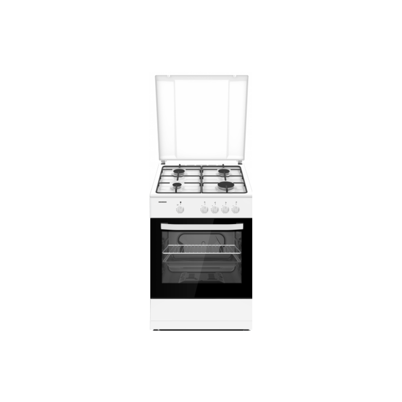 HEINNER PLINSKI ŠTEDNJAK HFSC-SME66IWH, 60X60CM, 4 PLAMENIKA, EMAJLIRANI POKLOPAC, METALNI POKLOPAC, ELEKTRIČNO PALJENJE, SIGURNOSNI UREĐAJ ZA KUHANJE I PEĆNICU, VRATA PEĆNICE S DVOSTRUKIM STAKLOM, UKLJUČENE MLAZNICE ZA LPG, KROMIRANI POSUDAI ROŠTILJ, DIMENZIJE (DxŠxV): 60X60X85 CM, BOJA: BIJELA