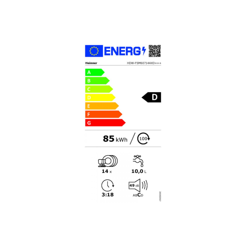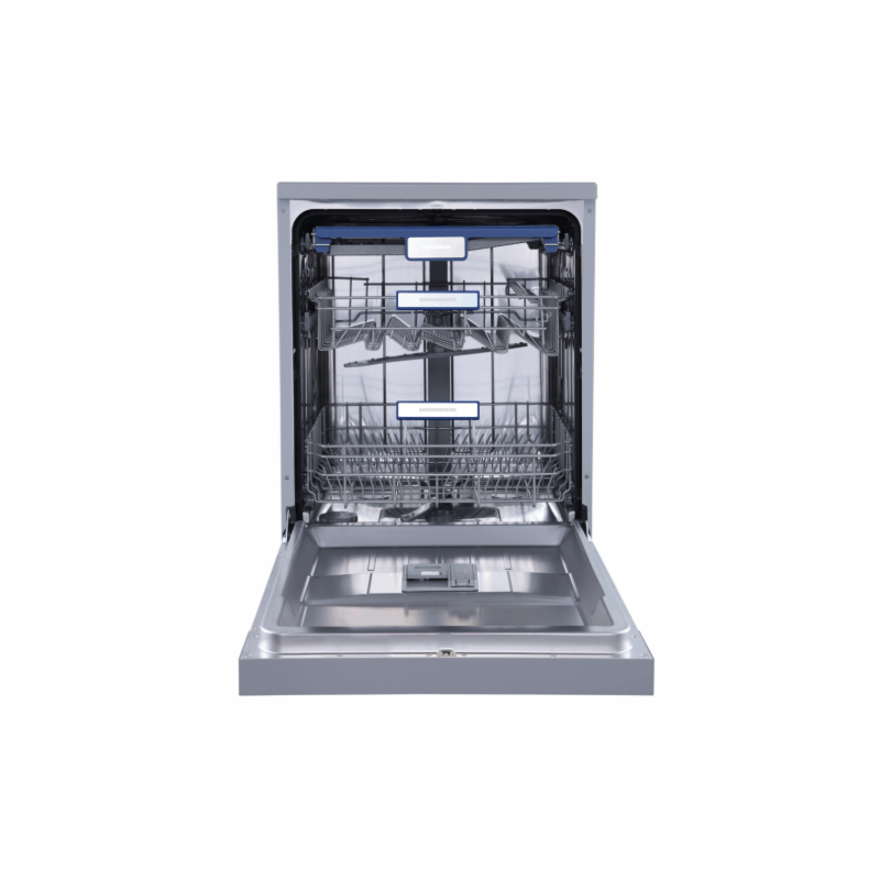 Heinner HDW-FSM60714AXD+++ perilica posuđa, Extraload – 14 mjesta, energetska klasa D, automatsko otvaranje vrata na kraju programa, elektroničko upravljanje, LED zaslon, 7 programa pranja, Brzi 30′ program, Auto Smart program: 55°C – 65°C, Dubinsko čišćenje – Higijenski program 70°C, 1H program, Intenzivni program 65°C, programabilni početak (1-24H), opcija polovičnog punjenja na obje košare – Dvozonska zona, funkcija intenzivnog pranja, Dodatna funkcija sušenja, 3 košare – gornja košara za pribor za jelo, Fleksibilan prostor – gornja košara s podesivom visinom (napunjena), donja košara: 4 sklopiva držača za tanjure, dječja brava, zaštita od poplave – Aquastop, potrošnja vode: 10L/ciklus pranja, dimenzije (ŠxVxD): 60 x 60 x 85 cm, boja: vrata – Izgled nehrđajućeg čelika/Ploča – Srebrna