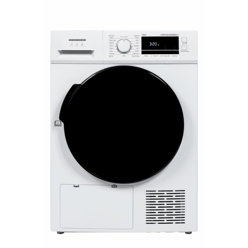 SUŠILICA RUBLJA S TOPLINSKOM PUMPOM HEINNER HHPD-M10G5PBKD++, KAPACITET PUNJENJA 10 KG, ENERGETSKA KLASA D, 16 PROGRAMA SUŠENJA, LED ZASLON, PROGRAM BRZOG SUŠENJA KOŠULJA, FUNKCIJA ODGOĐENOG POČETKA, FUNKCIJA PROTIV NABORA, ODABIR STUPNJA SUŠENJA, POKAZATELJ ČIŠĆENJA FILTRA ZA DLAČICE, POKAZATELJ PUNOG SPREMNIKA VODE, ZAŠTITA ZA DJECU, DIMENZIJE (DxŠxV): CM, BOJA: BIJELA