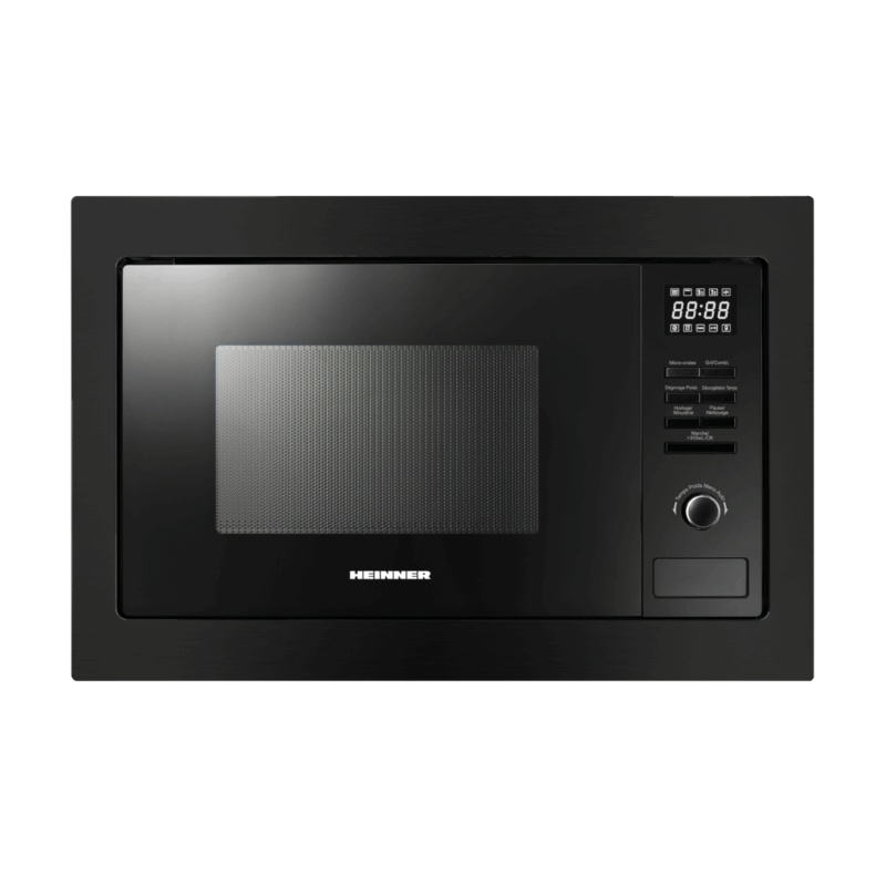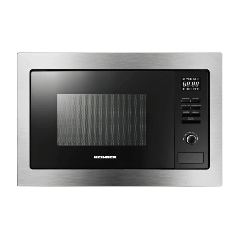 Ugradbena mikrovalna pećnica Heinner HMW-23BI, Kapacitet 23L, Digitalno upravljanje, LED zaslon, Snaga pećnice 800W, Snaga roštilja 1000W, 5 koraka snage, Tajmer, Maksimalno vrijeme kuhanja 60 min, Funkcija odmrzavanja, Zvučni signal na kraju programa, Dječja pristupna brava, Promjer rotirajuće ploče 270 mm, Dimenzije : 59,4×35,7×49,5 cm, Boja: Nehrđajući čelik