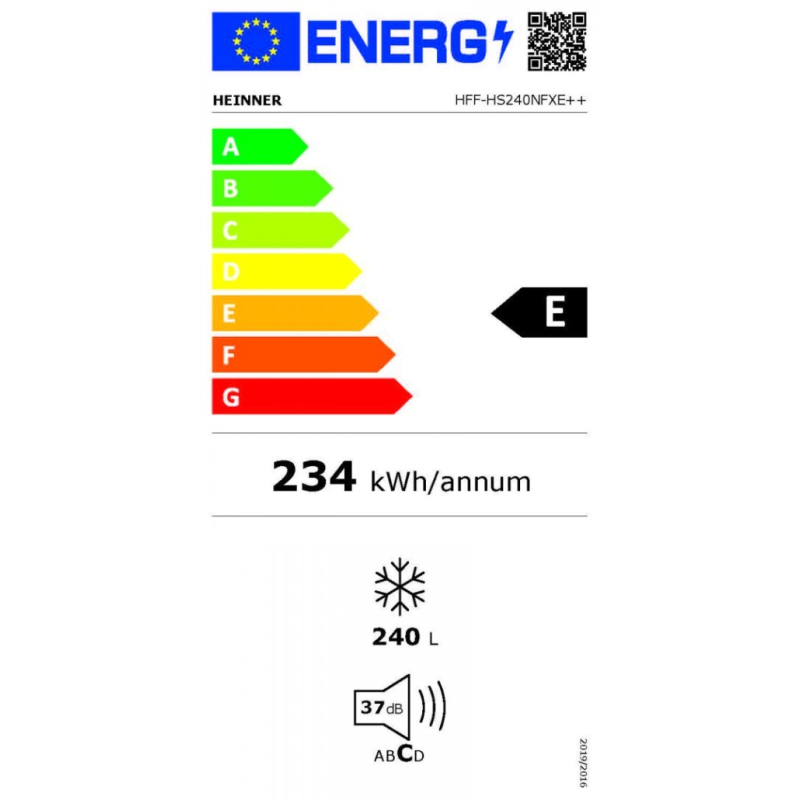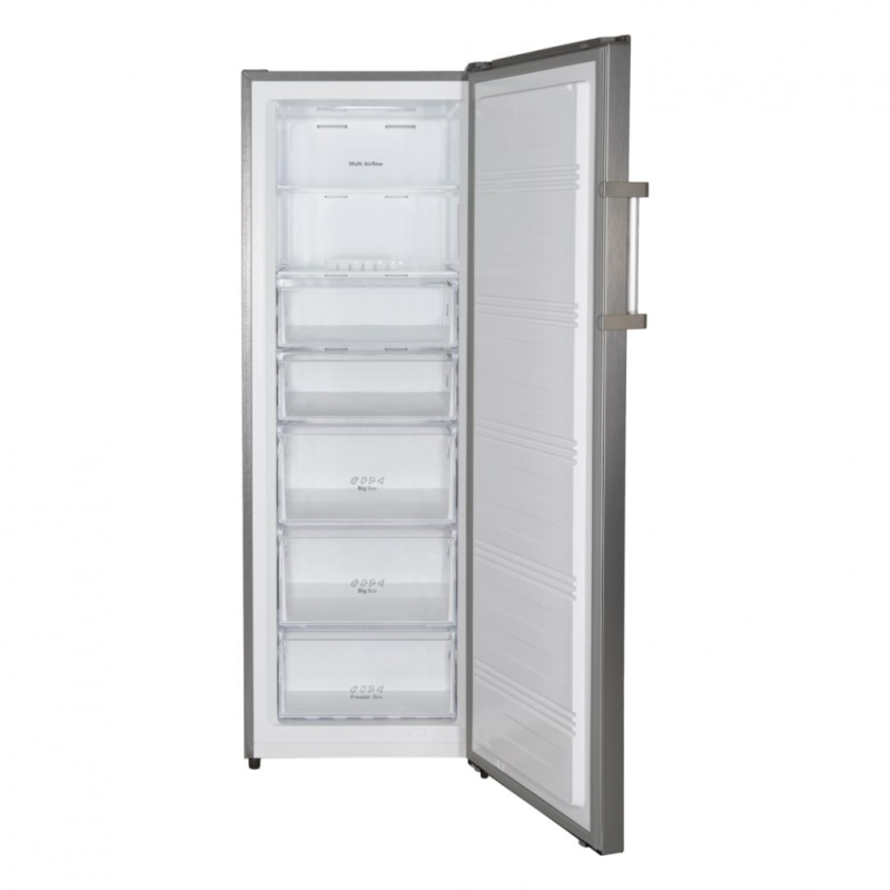 Heinner HFF-HS240NFXE++ zamrzivač, Full No Frost, Multi Air Flow sustav, energetska klasa: E, ukupni kapacitet: 240L, elektroničko upravljanje s zaslonom, funkcija “Brzo zamrzavanje”, ECO funkcija, 7 odjeljaka za zamrzavanje: 5 ladica + 2 odjeljka sa staklenim policama, LED svjetlo, alarm za otvorena vrata, dječja brava, vrata s mogućnošću preusmjeravanja, posuda za led, kapacitet zamrzavanja: 10,8 kg/24h, dimenzije (ŠxDxV): 59,5 x 59 x 172 cm, boja: Izgled nehrđajućeg čelika