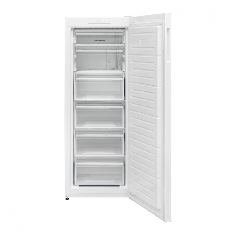 Zamrzivač Heinner HFF-V188E++, klasa energetske učinkovitosti: E, ukupni kapacitet: 187L, mehanička kontrola s podesivim termostatom, 6 odjeljaka zamrzivača, preklopna vrata, kapacitet zamrzavanja: 9,1 kg/24h, dimenzije (ŠxDxV): 54 x 59,5 x 145,5 cm, boja: Bijela