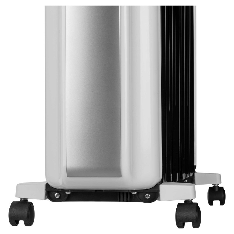 ELEKTRIČNI RADIJATOR PUNJEN ULJEM 12 grijaćih rebara Ulazna snaga: 2500 W  3 POSTAVKE GRIJANJA – 3 RAZINE SNAGE GRIJANJA  1000 W 1500 W 2500 W Raspon postavke temperature 5-35°C Način rada ECO LED zaslon Daljinsko upravljanje Novi oblik rebara poboljšava učinak grijanja za 27% Rad bez održavanja – nije potrebno mijenjati ulje tijekom cijelog vijeka trajanja radijatora Tih rad – također prikladan za spavaće sobe 4 kotačića i ručka radi lakšeg rukovanja Patentirana tehnoloacija razdvajanja stražnjeg rebra sprječava pregrijavanje  Osigurač za zaštitu od prenapona